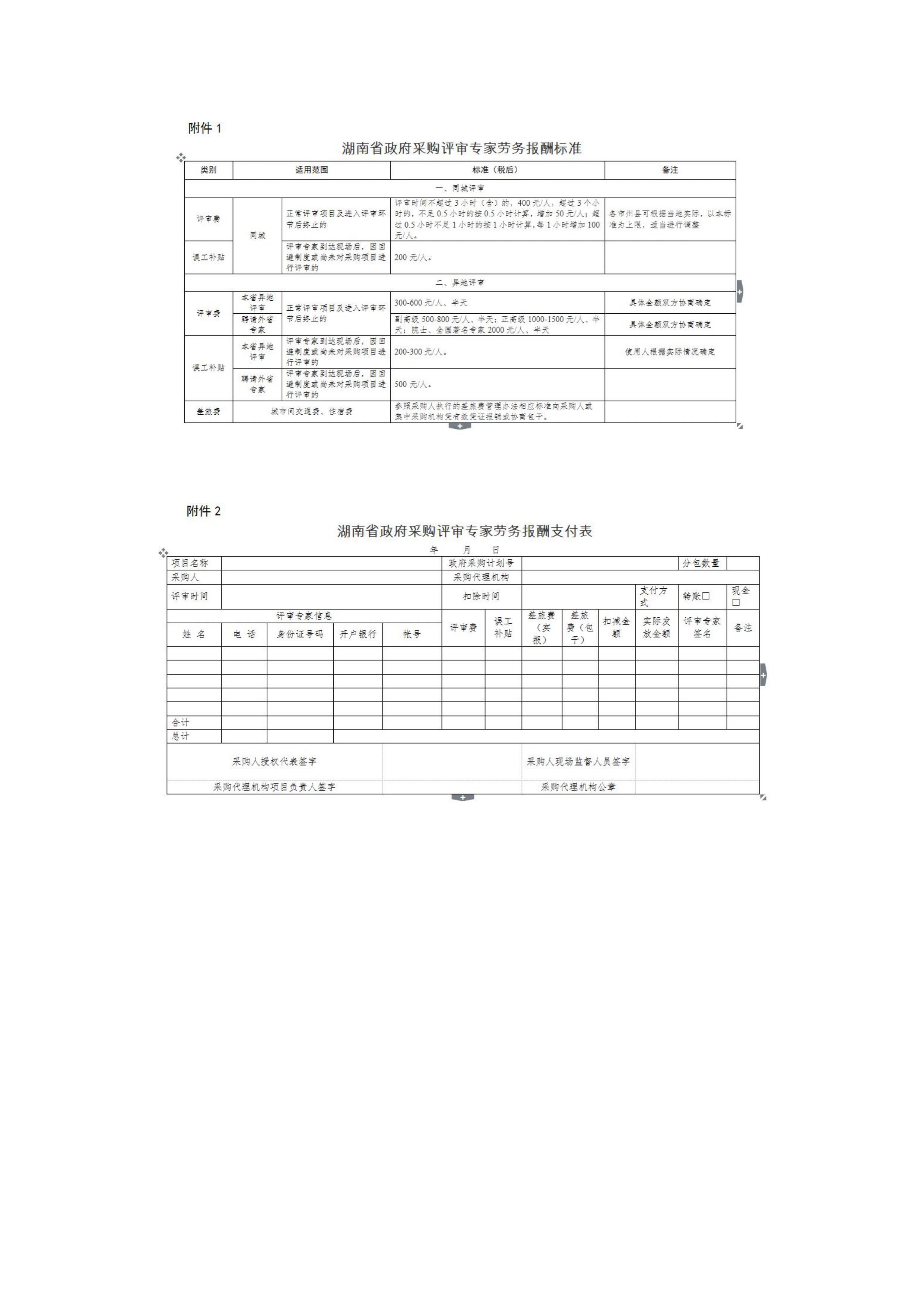 附件:1、湖南省政府采購(gòu)項(xiàng)目評(píng)審/家勞務(wù)報(bào)酬標(biāo)準(zhǔn)