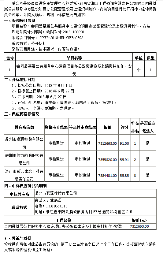 會(huì)同縣基層公共服務(wù)中心建設(shè)項(xiàng)目辦公配套建設(shè)及上墻資料制作、安裝  公開招標(biāo)中標(biāo)公告
