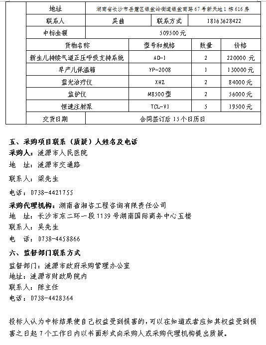 人民醫(yī)院新生兒科重癥監(jiān)護(hù)室設(shè)備采購(gòu)項(xiàng)目 中標(biāo)結(jié)果公告