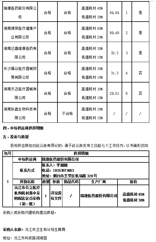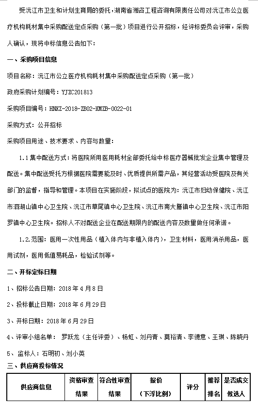 江市公立醫(yī)療機(jī)構(gòu)耗材集中采購配送定點(diǎn)采購(第一批)公開招標(biāo)中標(biāo)公告