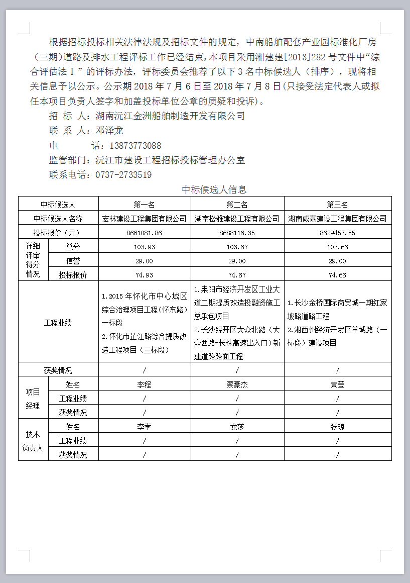中南船舶配套產(chǎn)業(yè)園標準化廠房(三期)道路及排水工程中標候選人公示