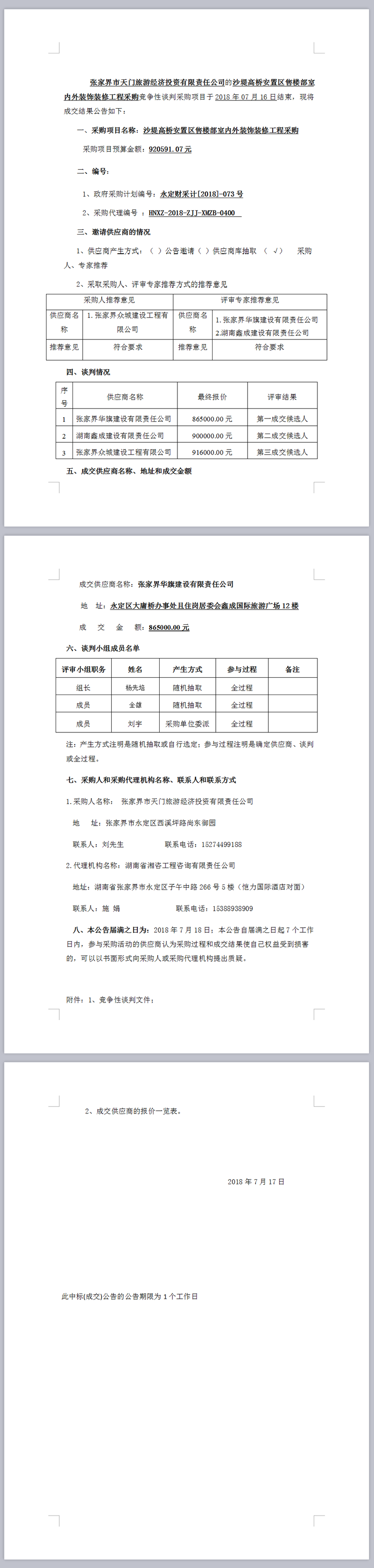 沙堤高橋安置區(qū)售樓部室內(nèi)外裝飾裝修工程采購談判成交公告