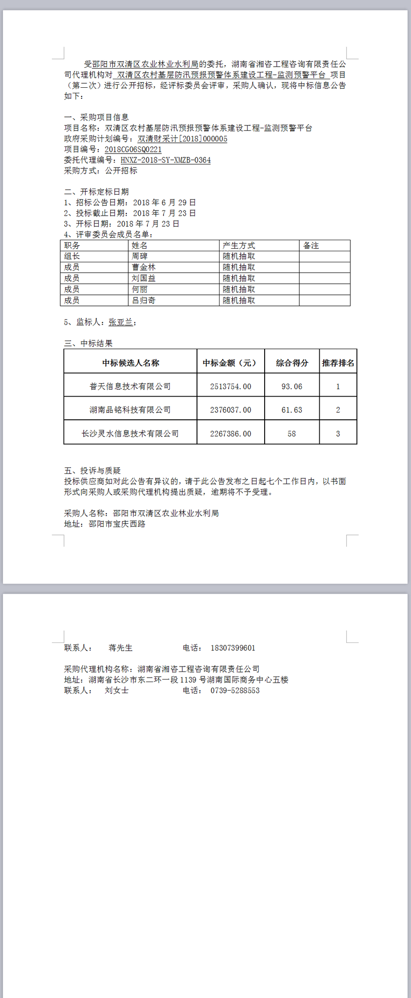 雙清區(qū)農村基層防汛預報預警體系建設工程-監(jiān)測預警平臺項目(第二次)成交公告
