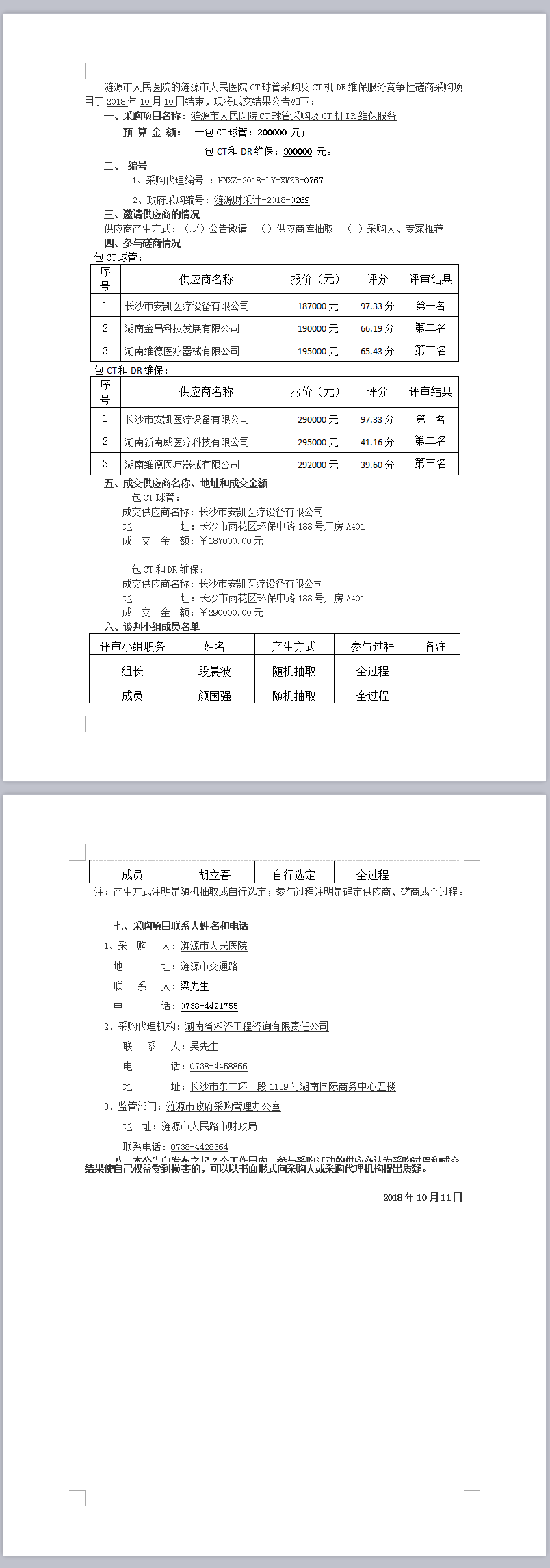 漣源市人民醫(yī)院CT球管采購及CT機(jī)DR維保服務(wù)競爭性磋商成交結(jié)果公告