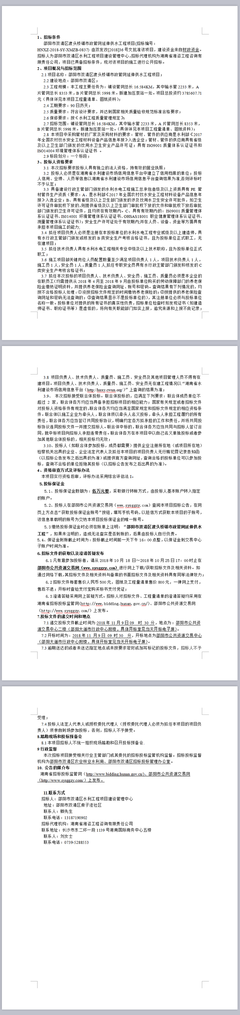 邵陽市雙清區(qū)渡頭橋鎮(zhèn)市政管網(wǎng)延伸供水工程項目招標(biāo)公告
