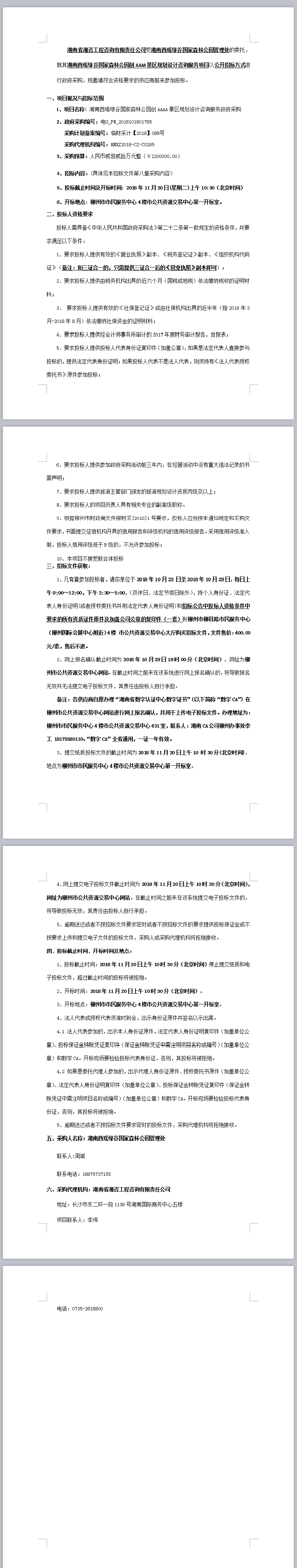 湖南西瑤綠谷國家森林公園創(chuàng)AAAA景區(qū)規(guī)劃設計咨詢服務政府采購招標公告