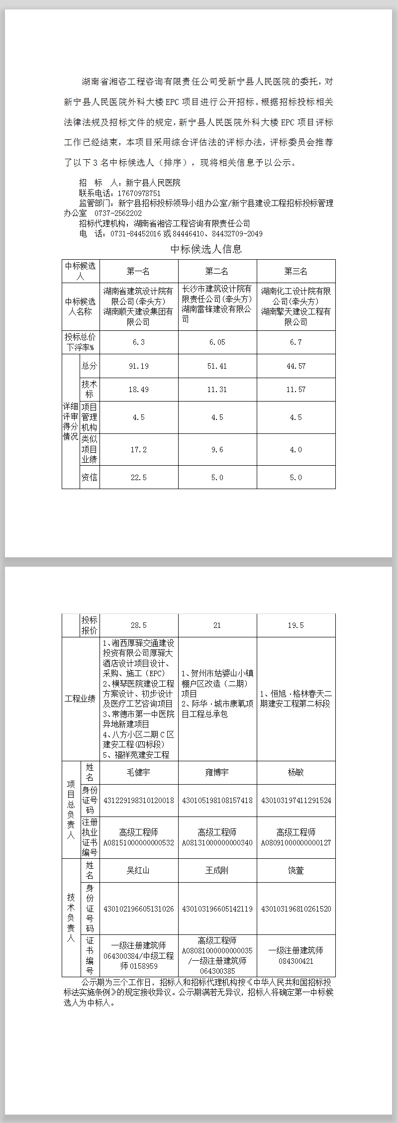 新寧縣人民醫(yī)院外科大樓EPC項目投標信息公示表