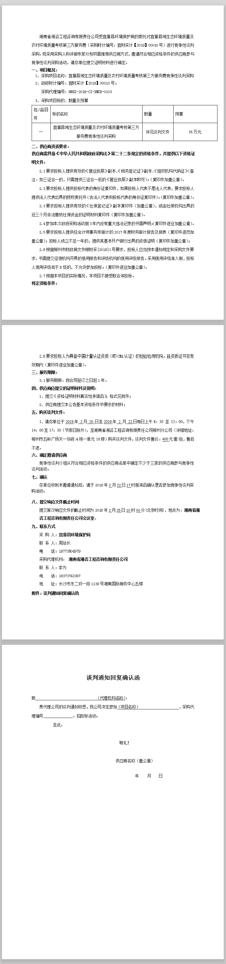 宜章縣域生態(tài)環(huán)境質(zhì)量及農(nóng)村環(huán)境質(zhì)量考核第三方服務(wù)費(fèi)競(jìng)爭(zhēng)性談判采購談判通知