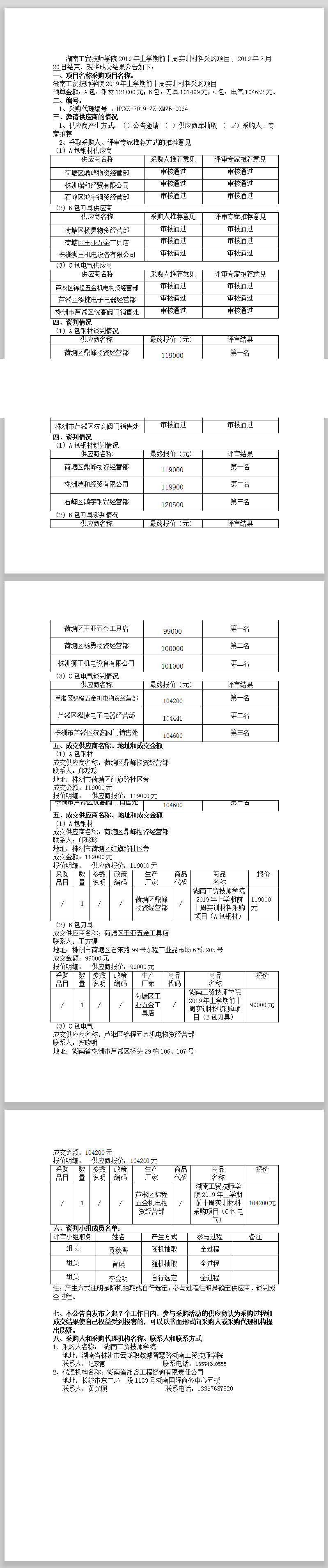 湖南工貿(mào)技師學(xué)院2019年上學(xué)期前十周實訓(xùn)材料采購項目競爭性談判成交公告