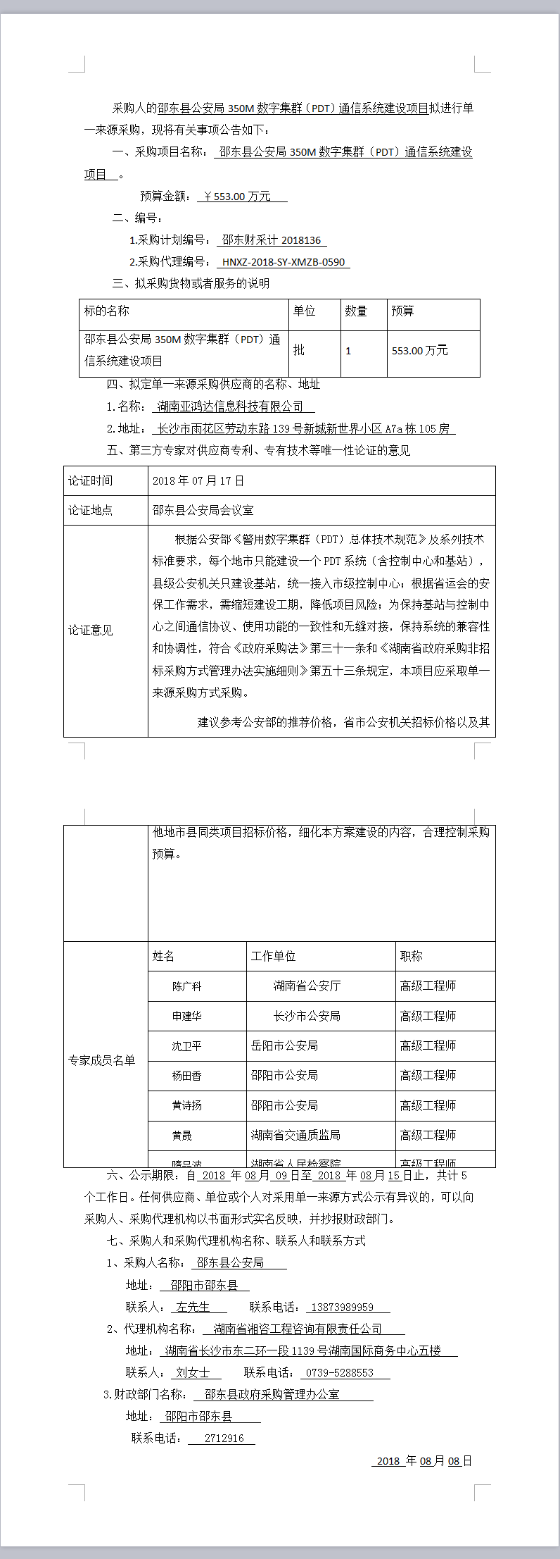 邵東縣公安局350M數(shù)字集群(PDT)通信系統(tǒng)建設(shè)項(xiàng)目 單一來(lái)源采購(gòu)公示