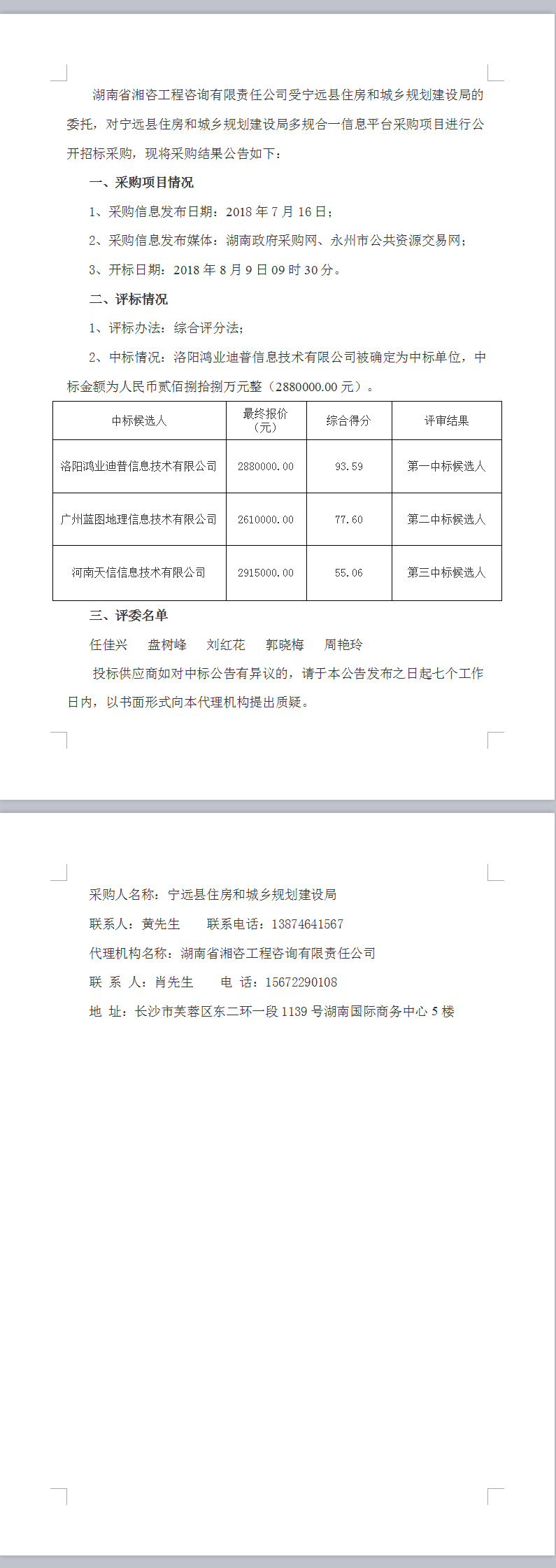 寧遠(yuǎn)縣住房和城鄉(xiāng)規(guī)劃建設(shè)局多規(guī)合一信息平臺(tái)采購(gòu)項(xiàng)目中標(biāo)公告