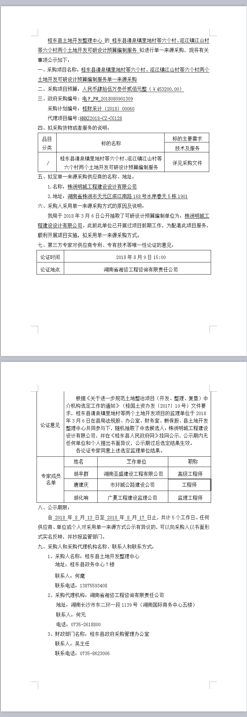 桂東縣清泉鎮(zhèn)里地村等六個村、漚江鎮(zhèn)江山村等六個村兩個土地開發(fā)可研設(shè)計預算編制服務單一來源采購公示