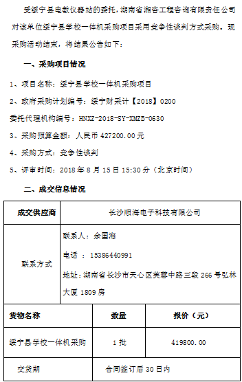 綏寧縣學(xué)校一體機(jī)采購項(xiàng)目談判成交公告