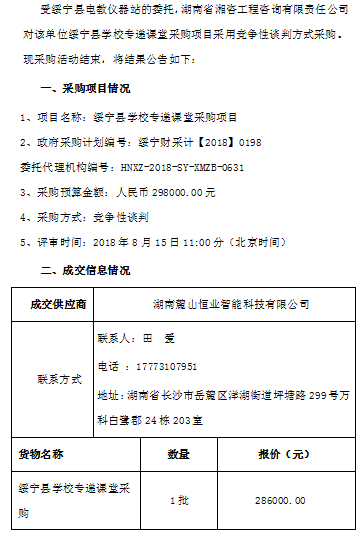 綏寧縣學(xué)校專遞課堂采購(gòu)項(xiàng)目談判成交公告