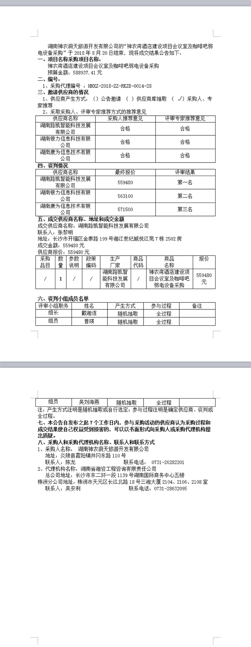 神農(nóng)灣酒店建設(shè)項(xiàng)目會(huì)議室及咖啡吧弱電設(shè)備采購競爭性談判成交公告