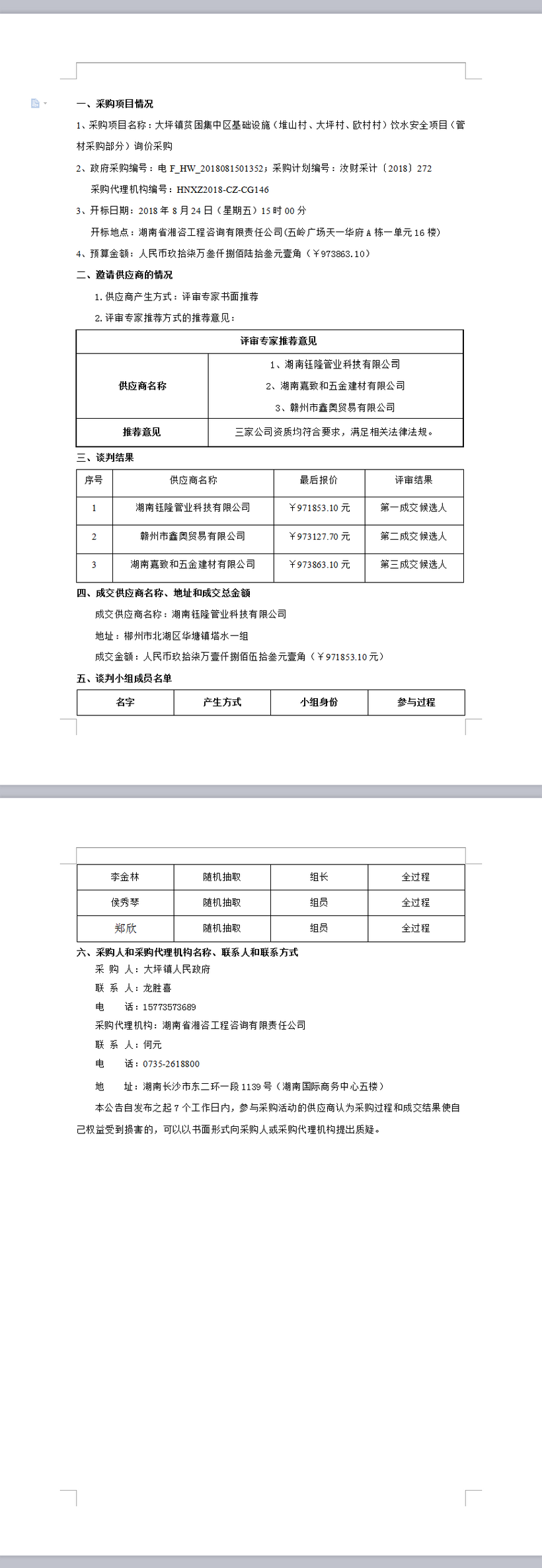 大坪鎮(zhèn)貧困集中區(qū)基礎(chǔ)設(shè)施(堆山村、大坪村、歐村村)飲水安全項目(管材采購部分)詢價采購成交公告