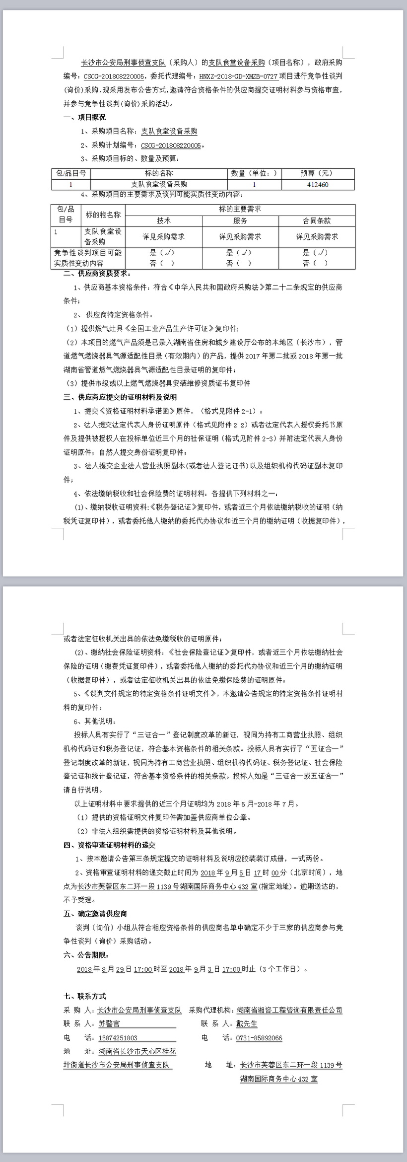長沙市公安局刑事偵查支隊支隊食堂設(shè)備采購競爭性談判邀請公告