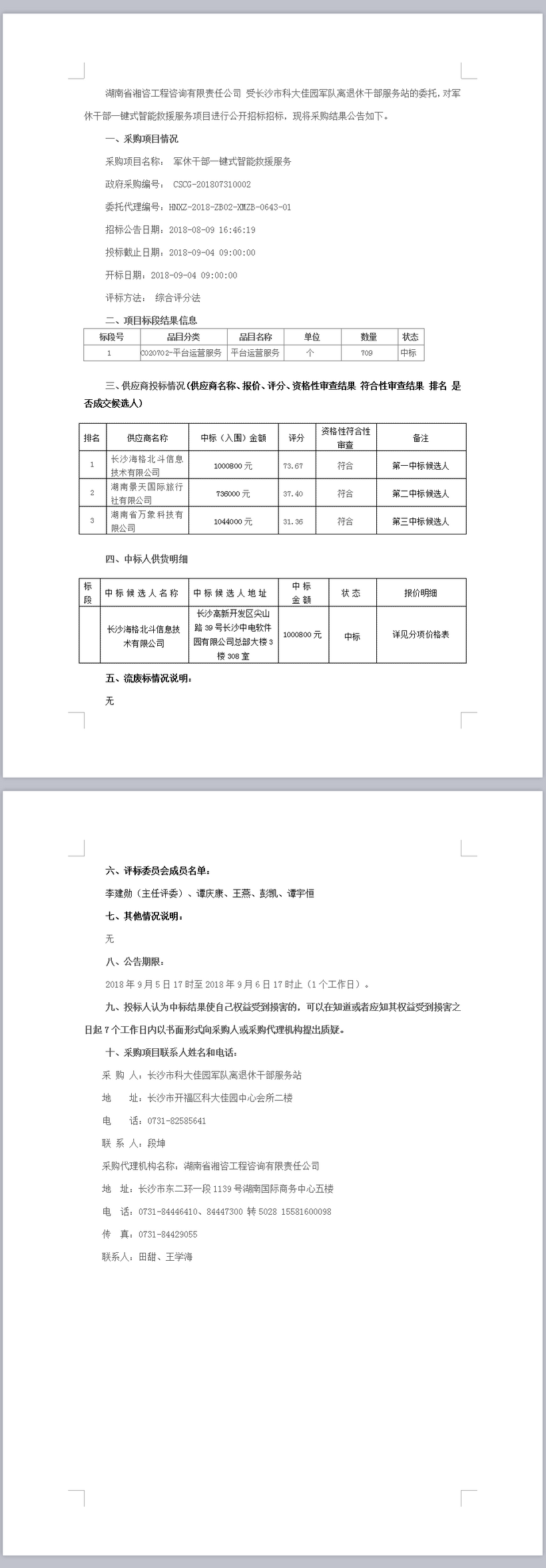 長沙市科大佳園軍隊離退休干部服務(wù)站軍休干部一鍵式智能救援服務(wù)結(jié)果公告