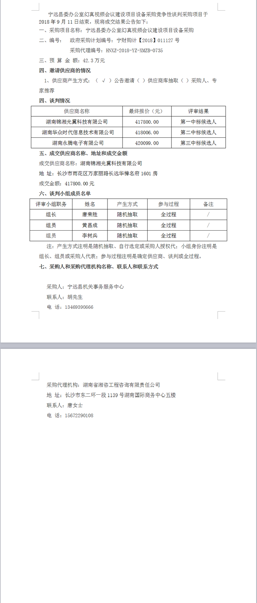 寧遠(yuǎn)縣委辦公室幻真視頻會(huì)議建設(shè)項(xiàng)目設(shè)備采購競爭性談判成交公告