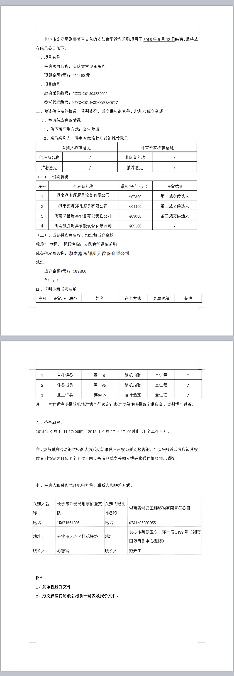 長沙市公安局刑事偵查支隊支隊食堂設備采購結(jié)果公告
