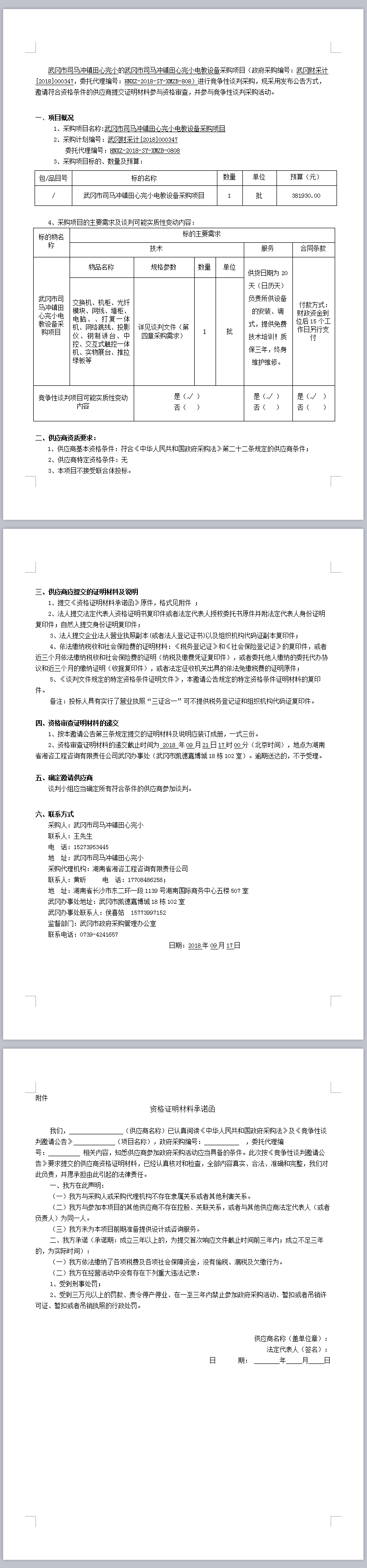 武岡市司馬沖鎮(zhèn)田心完小電教設(shè)備采購項(xiàng)目 競(jìng)爭性談判邀請(qǐng)公告