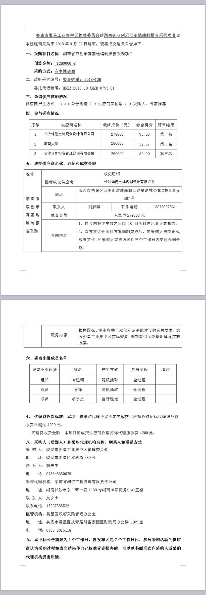湖南省雙創(chuàng)示范基地編制報告采購項目競爭性磋商成交結(jié)果公告
