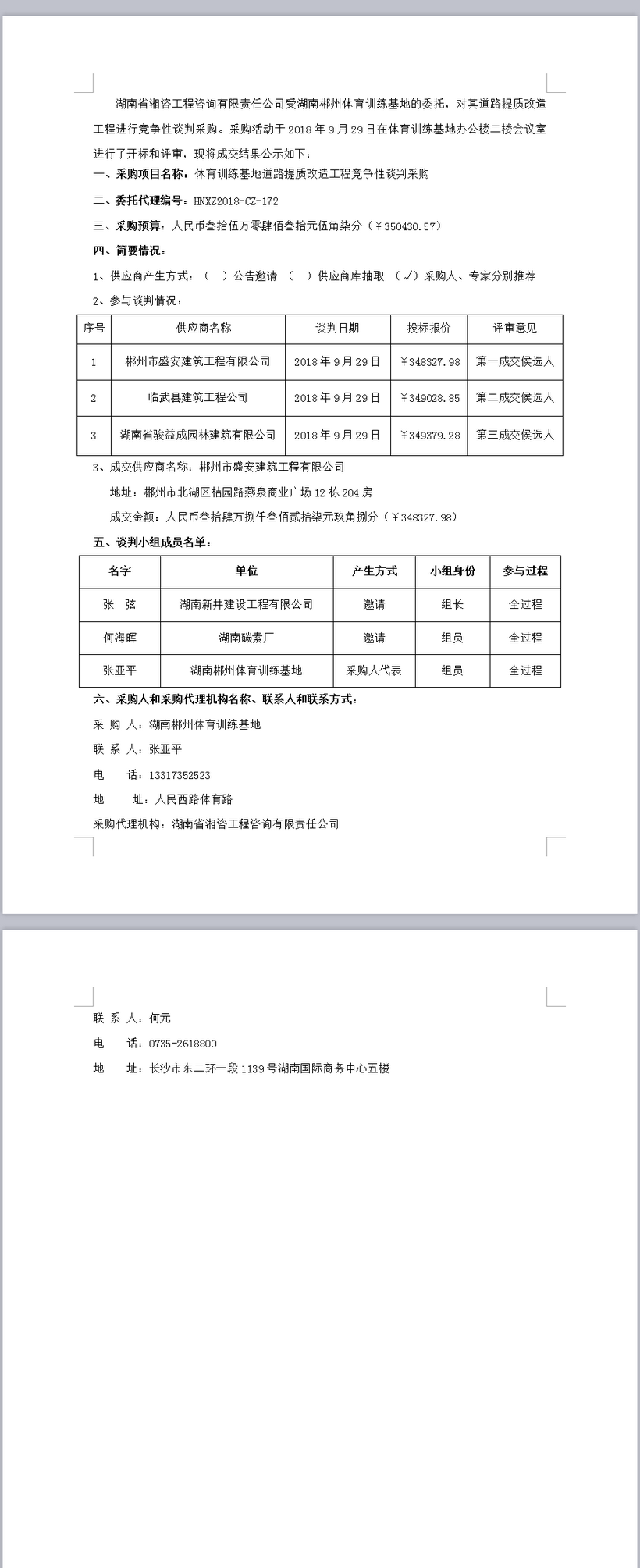 體育訓(xùn)練基地道路提質(zhì)改造工程競(jìng)爭(zhēng)性談判采購(gòu) 成交公告