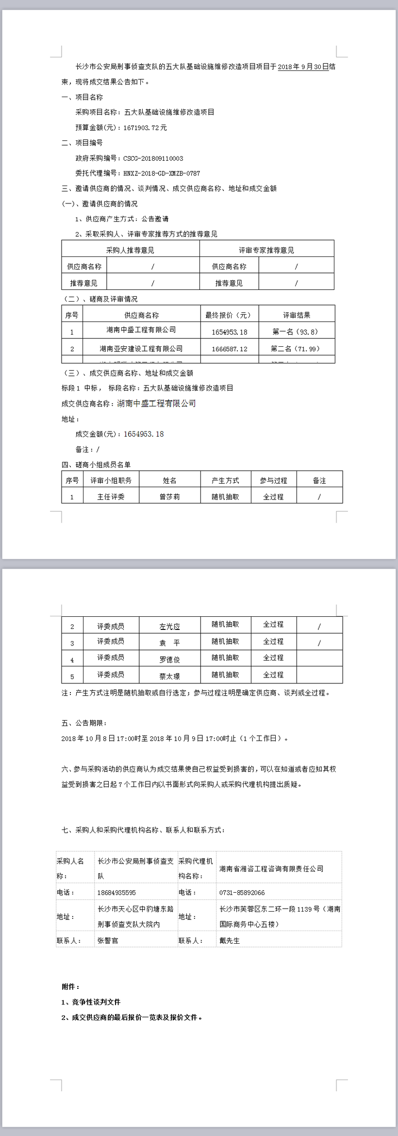 長沙市公安局刑事偵查支隊(duì)五大隊(duì)基礎(chǔ)設(shè)施維修改造項(xiàng)目結(jié)果公告