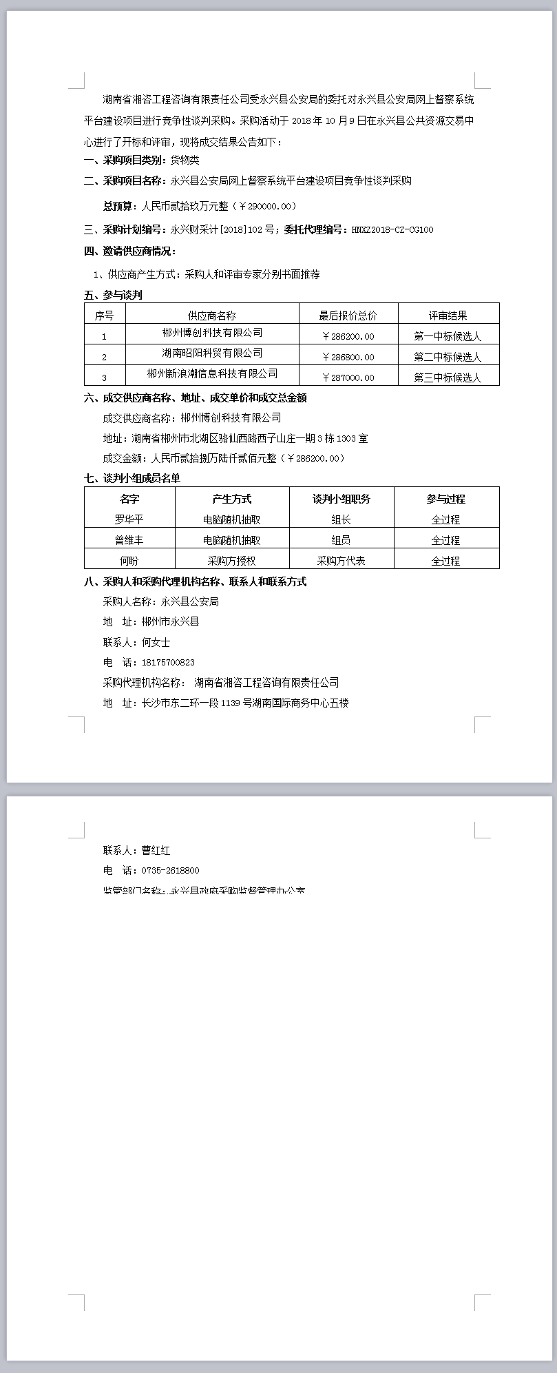 永興縣公安局網(wǎng)上督察系統(tǒng)平臺建設項目競爭性談判采購成交公告