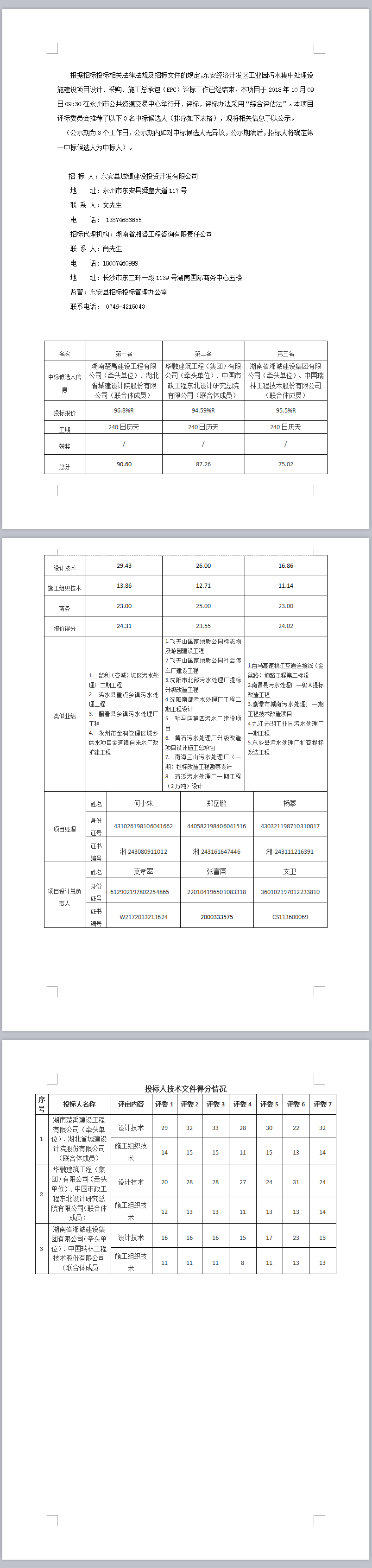 東安經(jīng)濟開發(fā)區(qū)工業(yè)園污水集中處理設(shè)施建設(shè)項目設(shè)計、采購、施工總承包(EPC)項目中標候選人公示