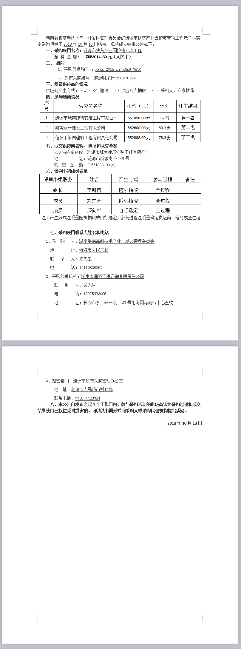 漣源市扶貧產(chǎn)業(yè)園護(hù)坡專項(xiàng)工程 競(jìng)爭(zhēng)性磋商成交結(jié)果公告