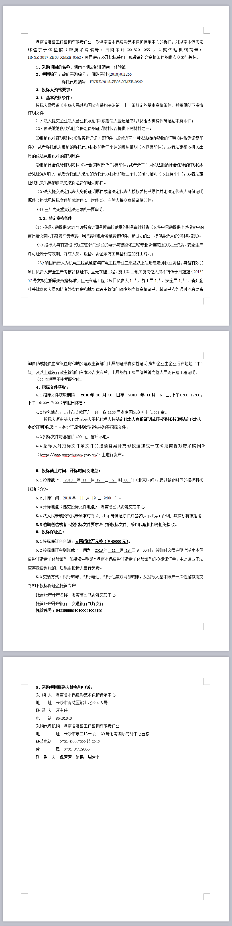 湖南木偶皮影非遺親子體驗(yàn)館招標(biāo)公告