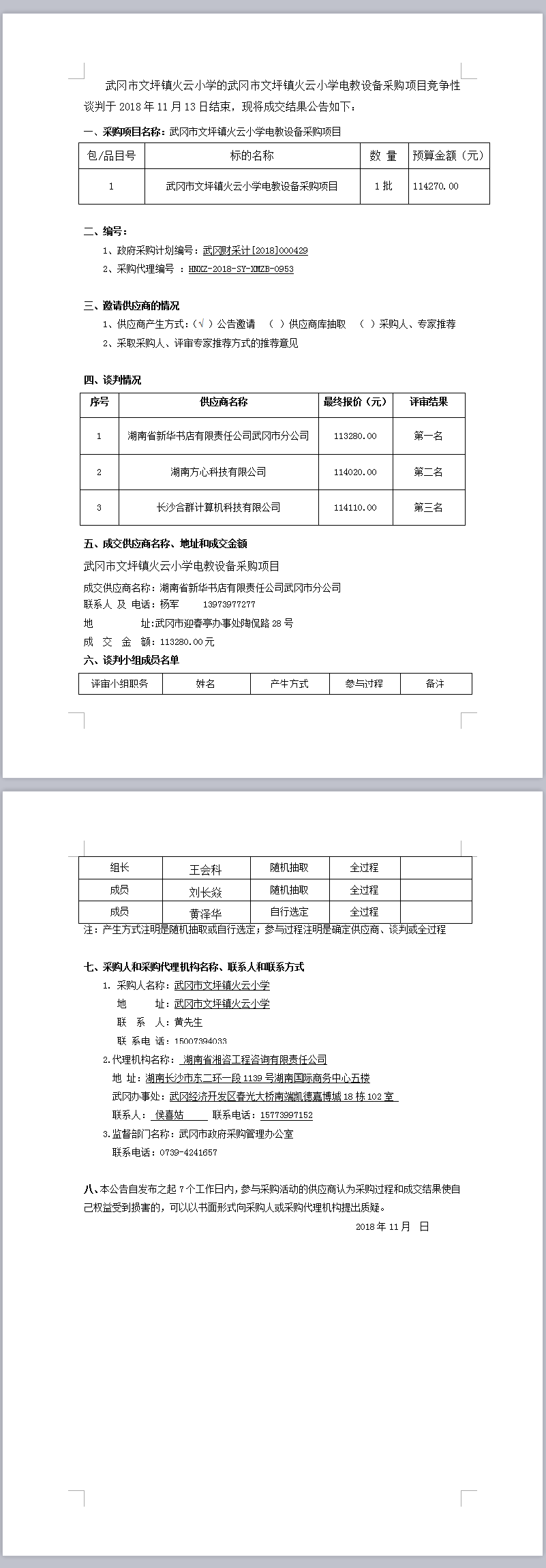 武岡市文坪鎮(zhèn)火云小學(xué)電教設(shè)備采購項(xiàng)目競爭性談判成交結(jié)果公告