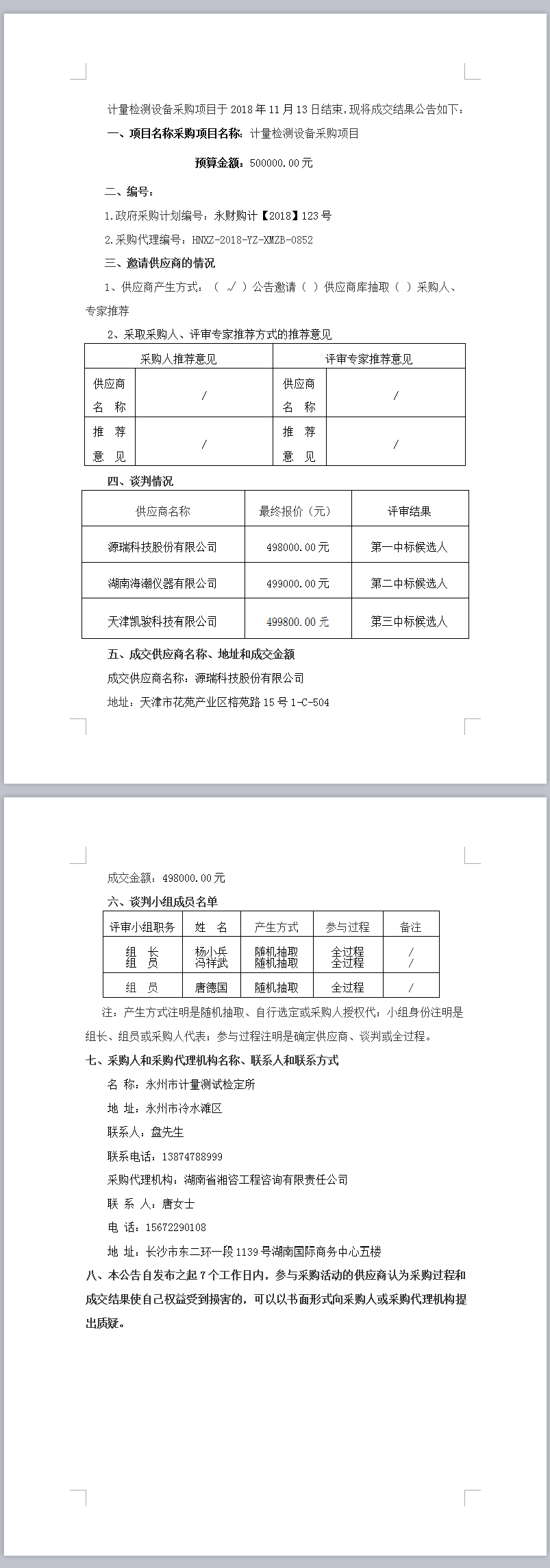 計(jì)量檢測設(shè)備采購項(xiàng)目 競爭性談判成交公告