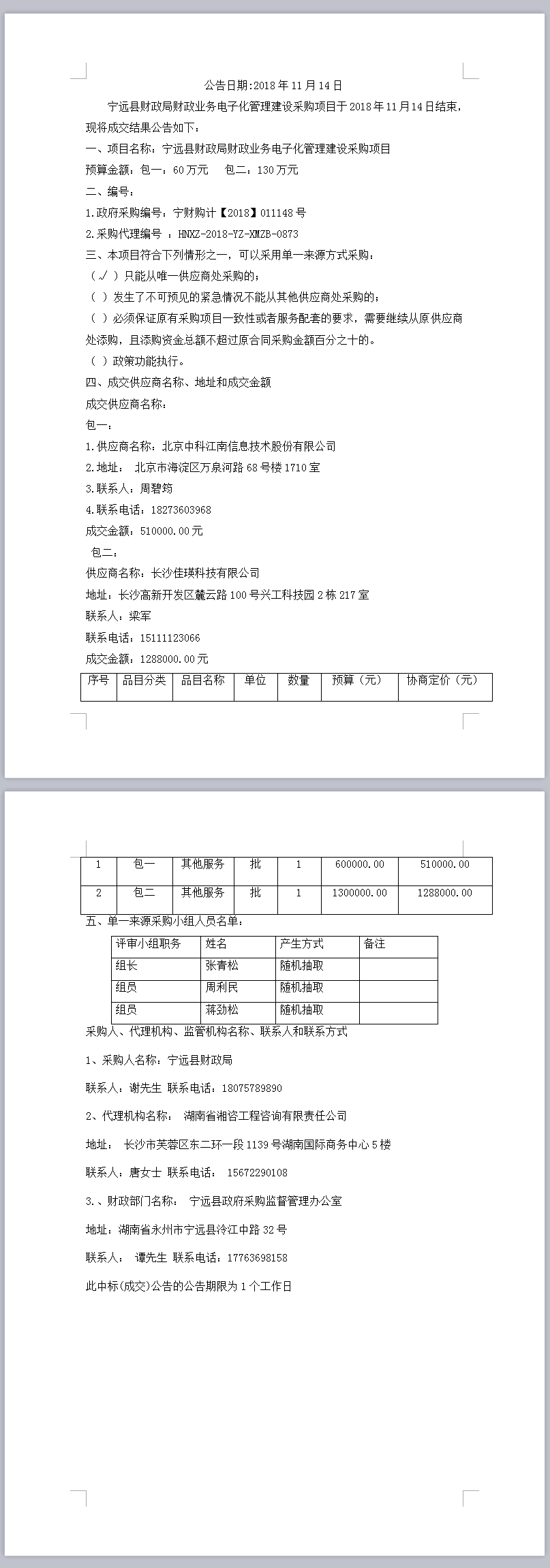 寧遠(yuǎn)縣財(cái)政局財(cái)政業(yè)務(wù)電子化管理建設(shè)采購(gòu)項(xiàng)目單一來(lái)源成交公告