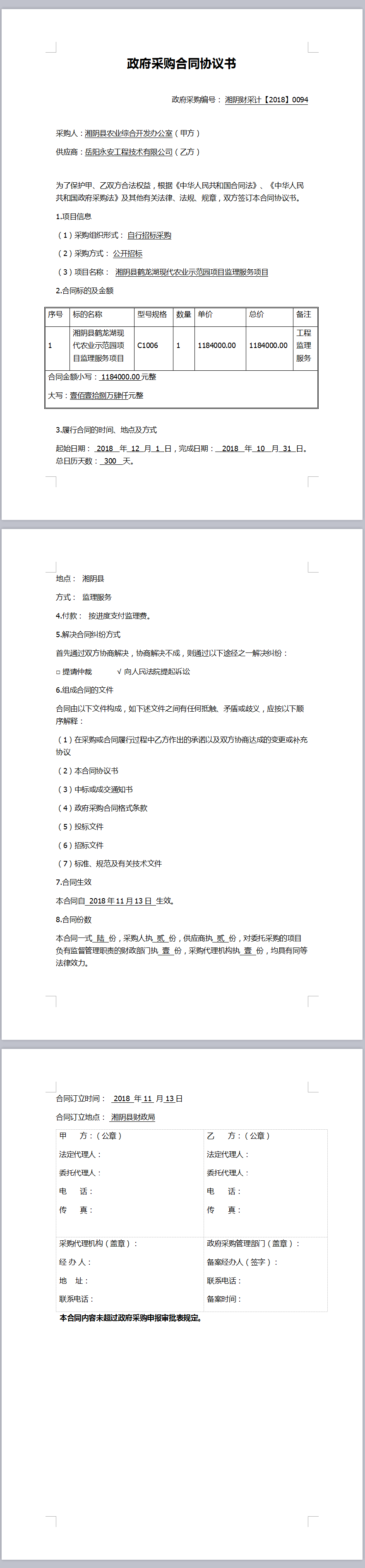 湘陰縣鶴龍湖現(xiàn)代農(nóng)業(yè)示范園項(xiàng)目監(jiān)理服務(wù)項(xiàng)目合同公示