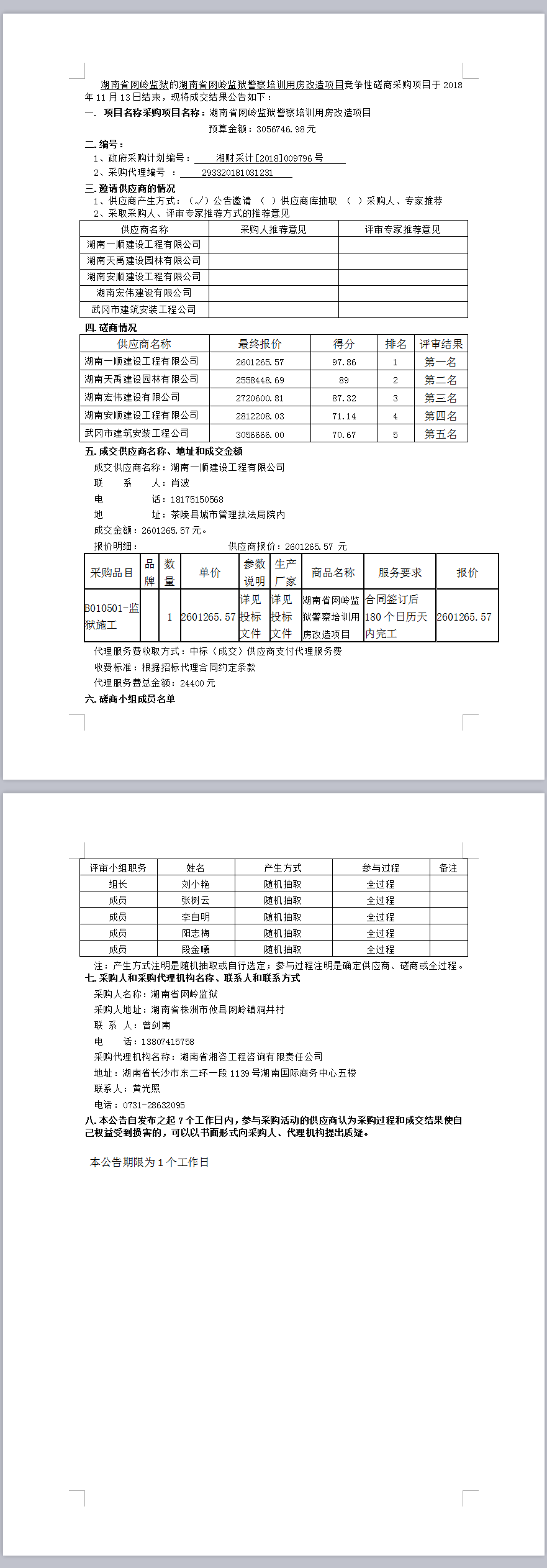 湖南省網(wǎng)嶺監(jiān)獄警察培訓(xùn)用房改造項目競爭性磋商成交公告