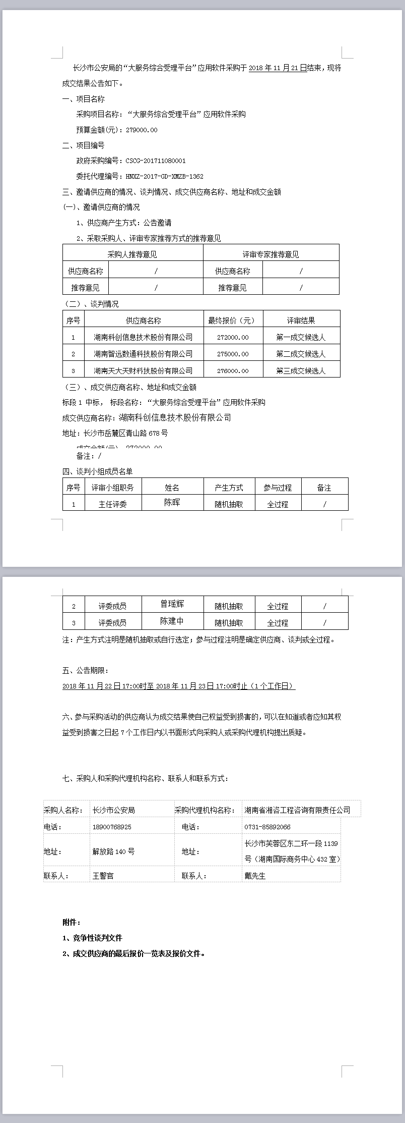 “大服務綜合受理平臺”應用軟件采購結(jié)果公告