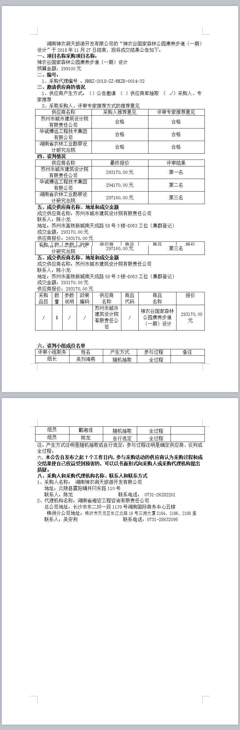 神農(nóng)谷國家森林公園康養(yǎng)步道(一期)設(shè)計競爭性談判成交公告