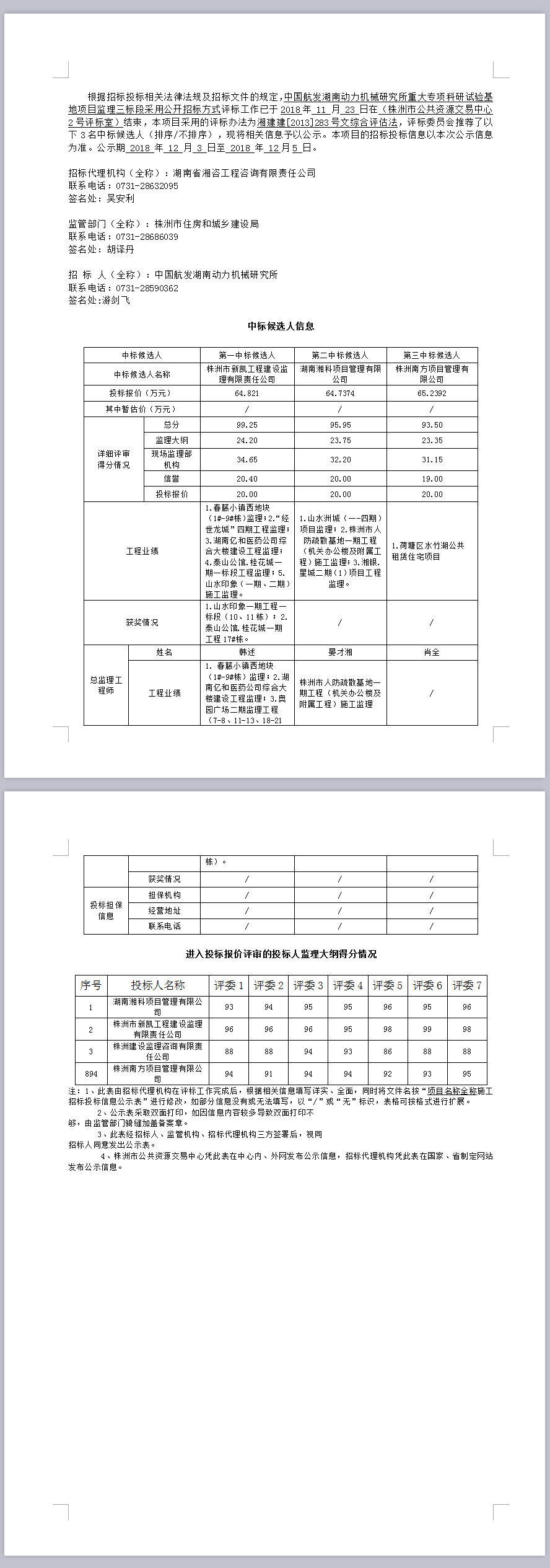 中國(guó)航發(fā)湖南動(dòng)力機(jī)械研究所重大專項(xiàng)科研試驗(yàn)基地項(xiàng)目監(jiān)理三標(biāo)段 招標(biāo)投標(biāo)信息公示表