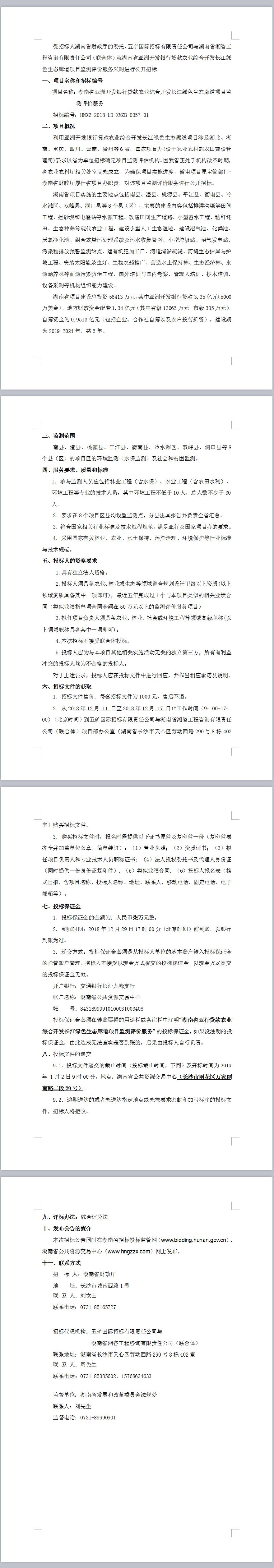 湖南省亞洲開發(fā)銀行貸款農(nóng)業(yè)綜合開發(fā)長江綠色生態(tài)廊道項目監(jiān)測評價服務(wù)招標(biāo)公告