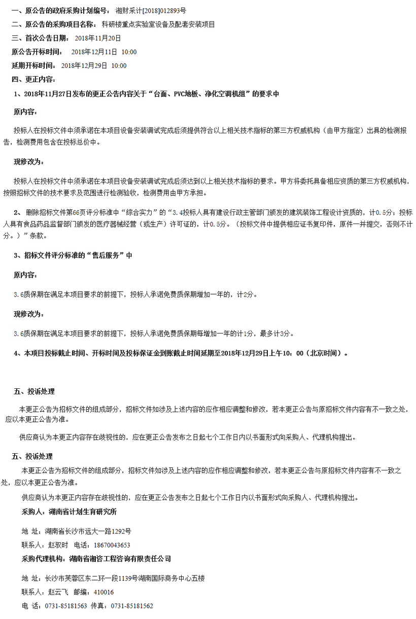 湖南省計(jì)劃生育研究所科研樓重點(diǎn)實(shí)驗(yàn)室設(shè)備及配套安裝項(xiàng)目公開招標(biāo)更正公告(2)