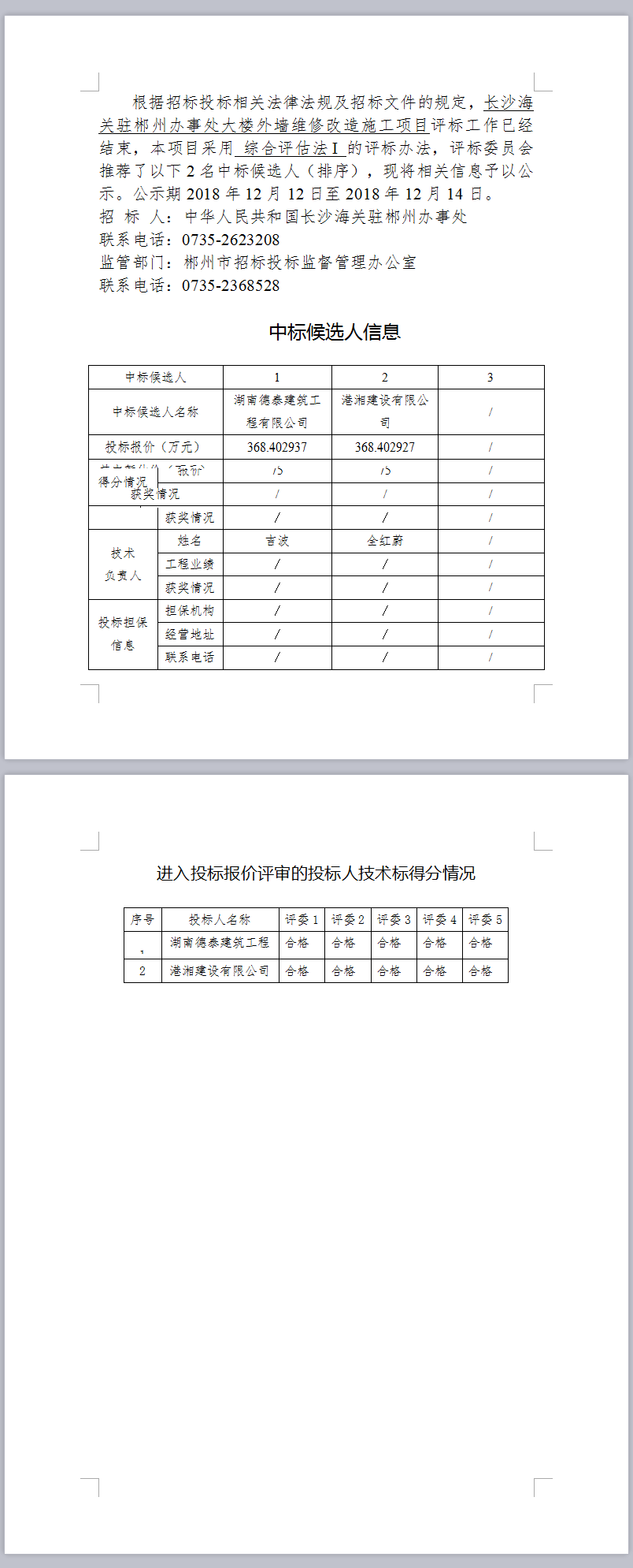 長沙海關(guān)駐郴州辦事處大樓外墻維修改造施工項目中標(biāo)候選人公示