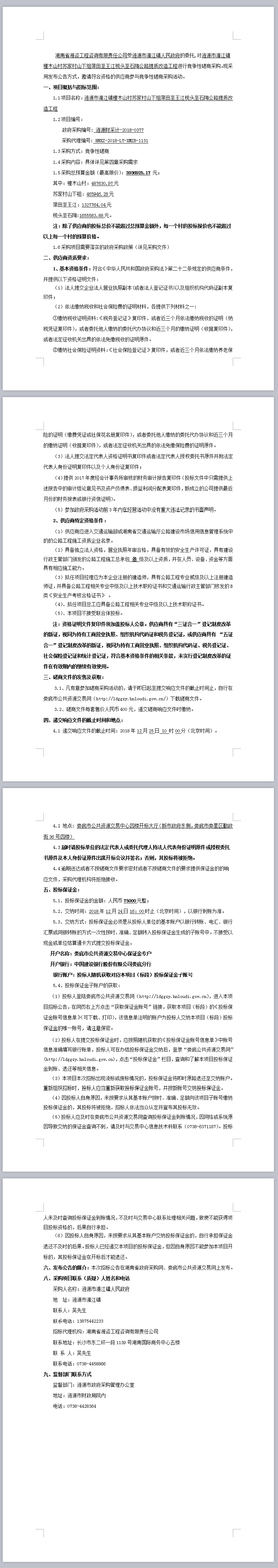 漣源市湄江鎮(zhèn)檀木山村蘇家村山下組蒎田至王江枧頭至石陶公路提質(zhì)改造工程競(jìng)爭(zhēng)性磋商邀請(qǐng)公告