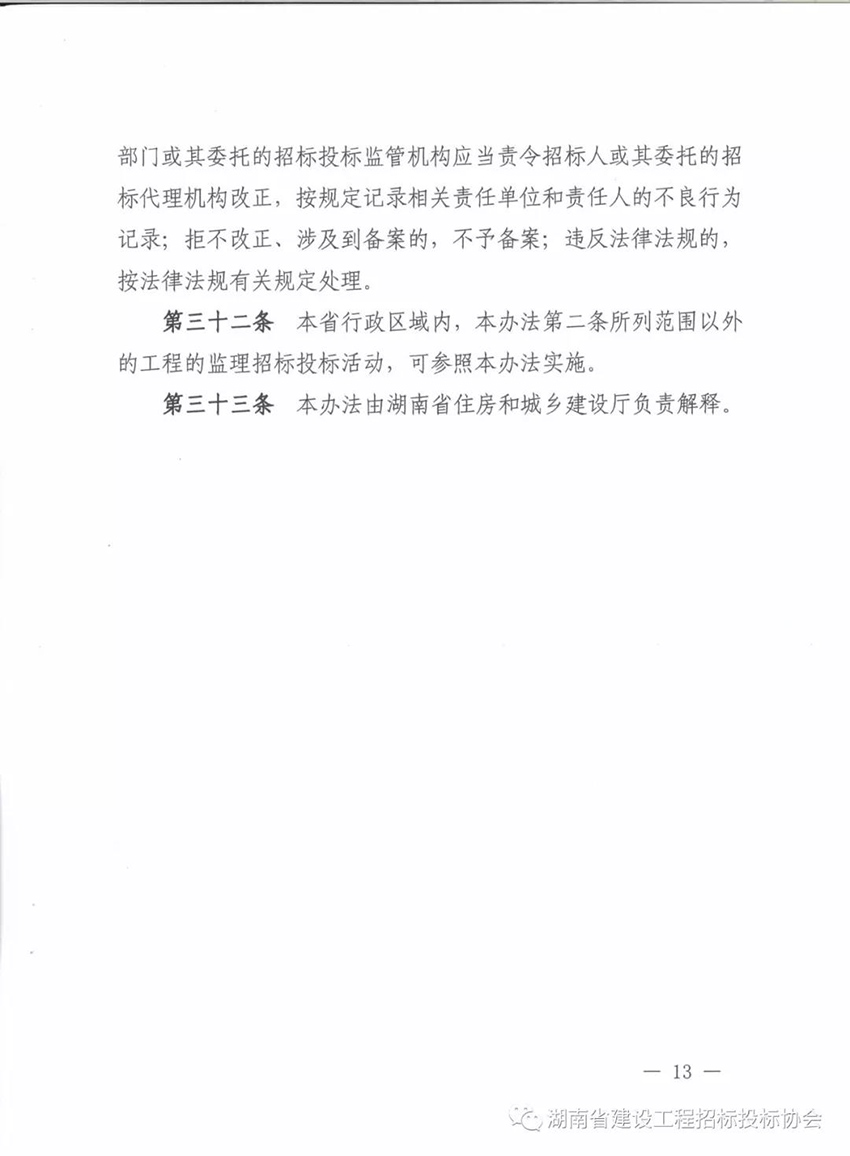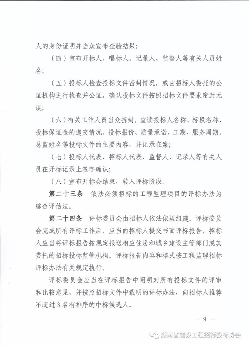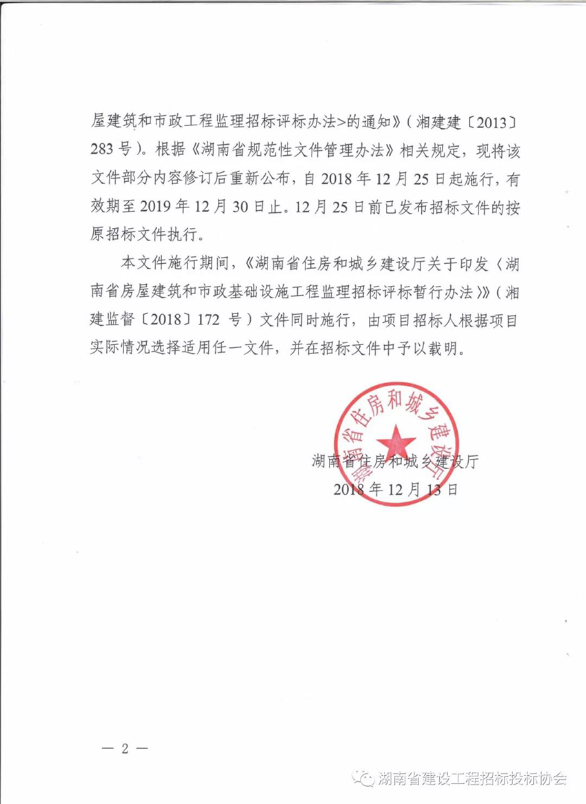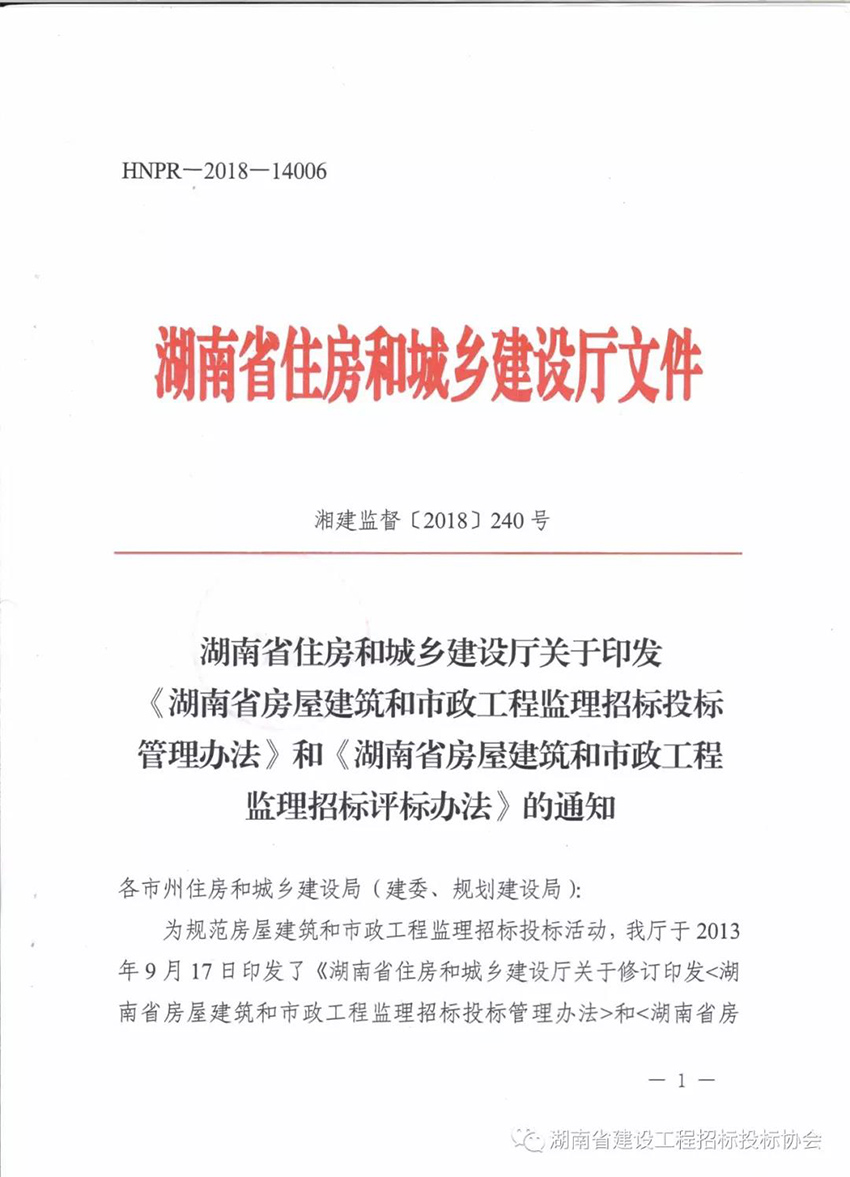 關(guān)于印發(fā)《湖南省房屋建筑和市政工程監(jiān)理招標(biāo)投標(biāo)管理辦法》和《湖南省房屋建筑和市政工程監(jiān)理招標(biāo)評(píng)標(biāo)辦法》的通知湘建監(jiān)督【2018】240號(hào)