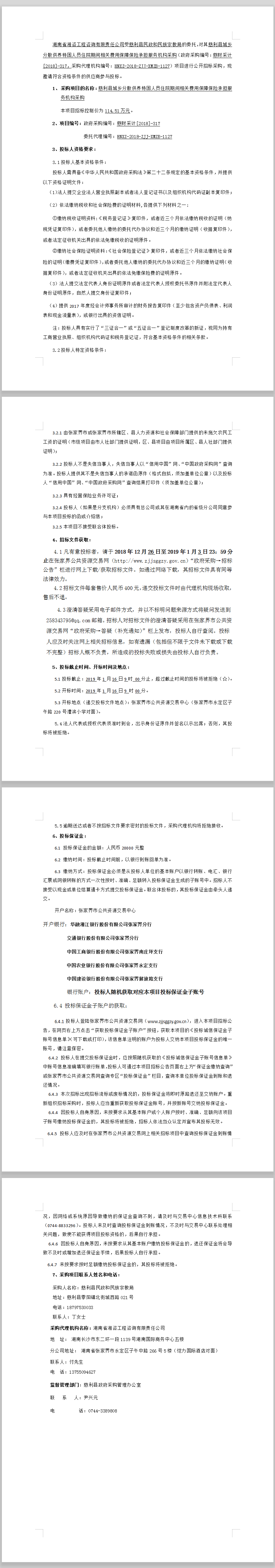 慈利縣城鄉(xiāng)分散供養(yǎng)特困人員住院期間相關(guān)費用保障保險承擔(dān)服務(wù)機(jī)構(gòu)采購