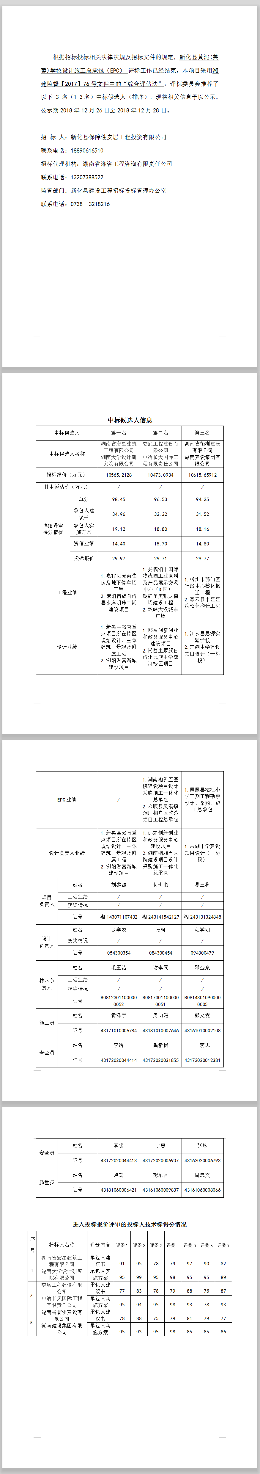 新化縣黃泥(芙蓉)學(xué)校設(shè)計(jì)施工總承包(EPC)中標(biāo)候選人公示更正公告