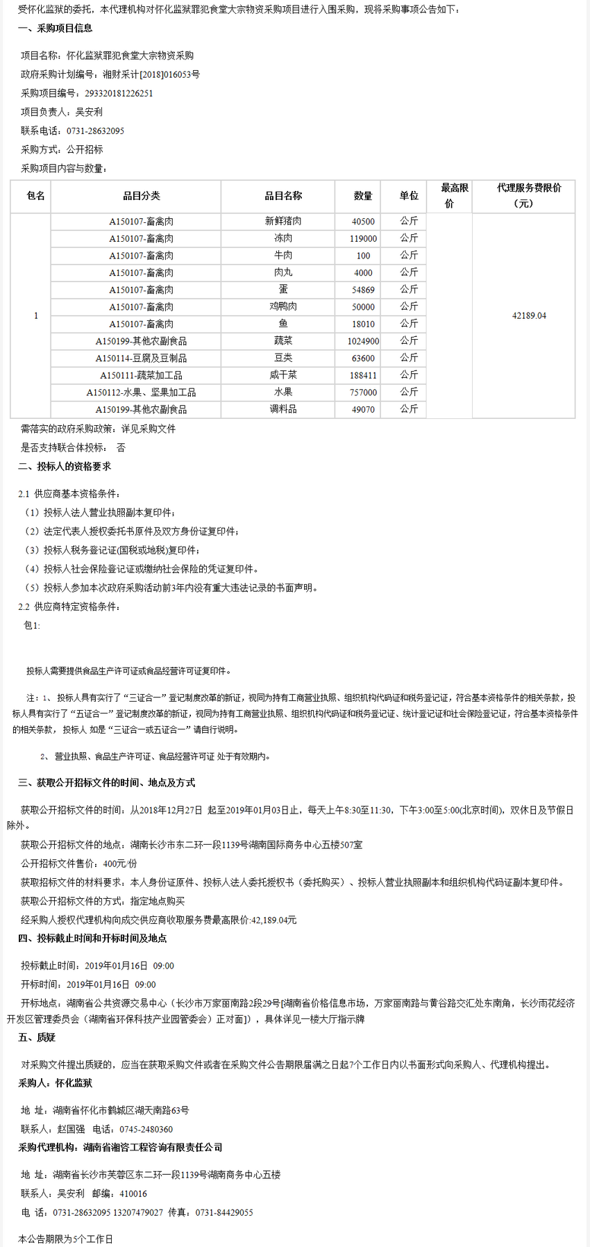 懷化監(jiān)獄罪犯食堂大宗物資采購(gòu)項(xiàng)目入圍采購(gòu)公開招標(biāo)公告