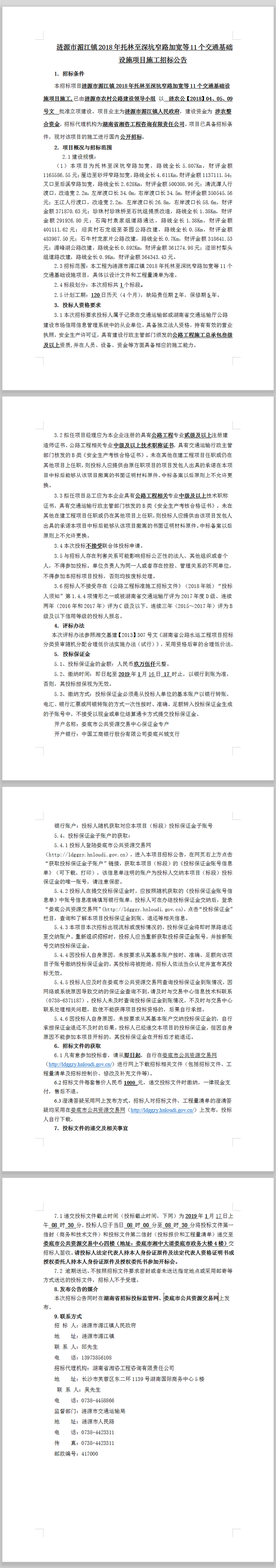 漣源市湄江鎮(zhèn)2018年托林至深坑窄路加寬等11個交通基礎(chǔ)設施項目施工招標公告