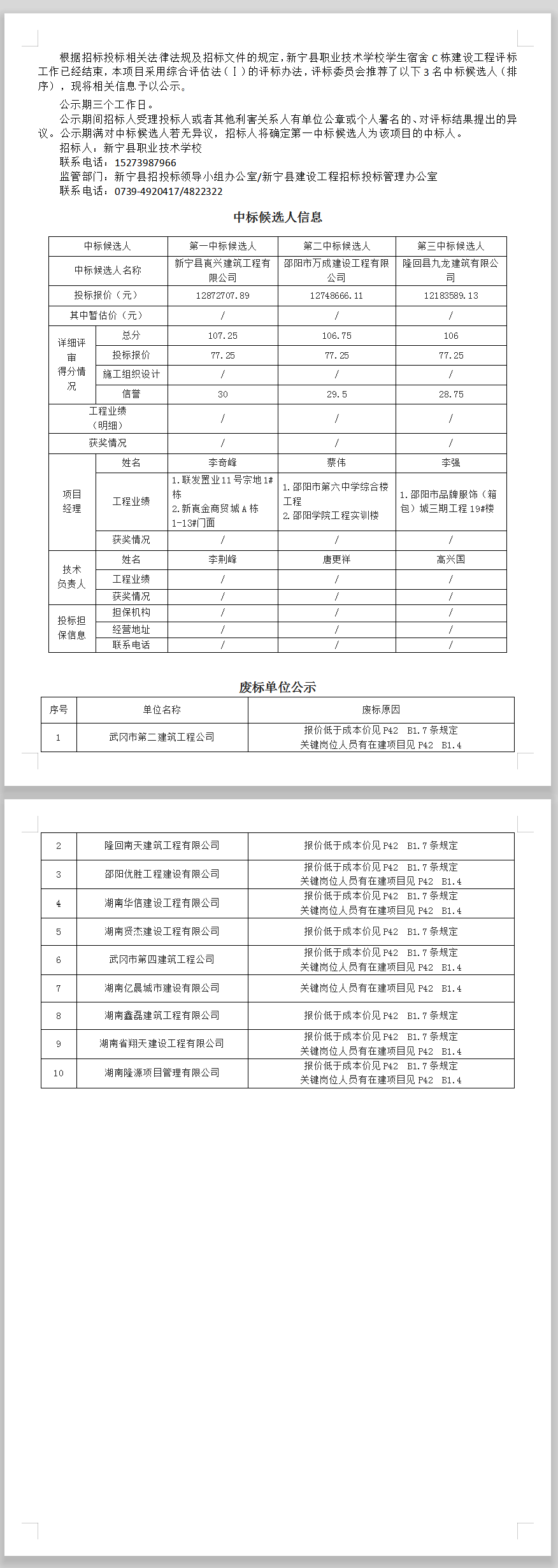 新寧縣職業(yè)技術(shù)學(xué)校學(xué)生宿舍C棟建設(shè)工程中標候選人公示